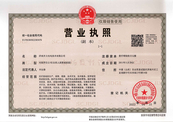 是集研發、生產、銷售、服務于一體的科技企業。齊力在職員工本科以上學歷者近百人,在深圳擁有國內頂尖研發中心,與國際著名的芯片等原材料供應商建立了長期合作關系,實現了原材料的全球采購。在全國設立了24個省級辦事處及完善的本地化售后服務網點。齊力生產研發單位:濟南齊力醫療器械有限公司;濟南齊力光電技術有限公司;廣州齊力生物技術有限公司;芯海創半導體(深圳)有限公司。